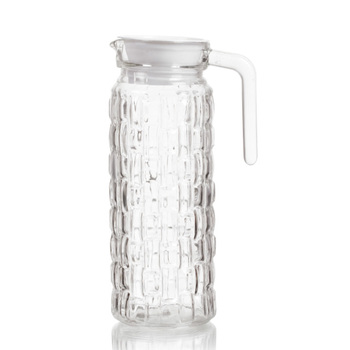 เหยือกแก้ว1L ใสทรงหมากรุกสูงพร้อมฝาปิดสีขาว PP มาตรฐาน LFGB